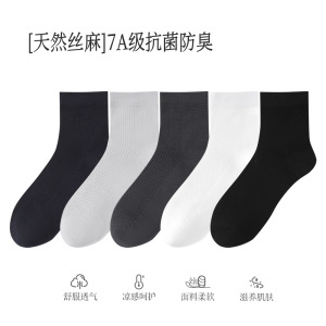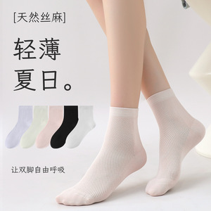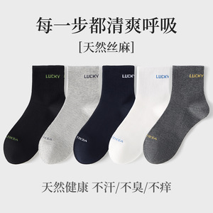 苎麻袜子夏薄款凉感男女袜无骨不硌脚吸湿透气干爽防臭男棉袜中筒