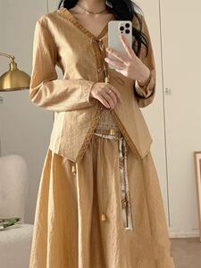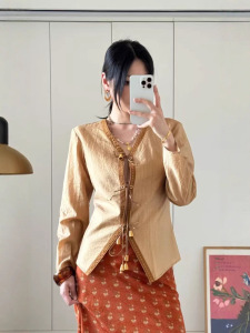钟*曦同款女装复古轻薄刺绣V领系带衬衫高腰半裙法式小众2025新款
