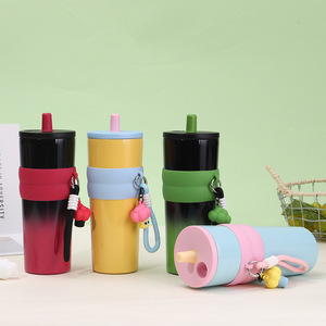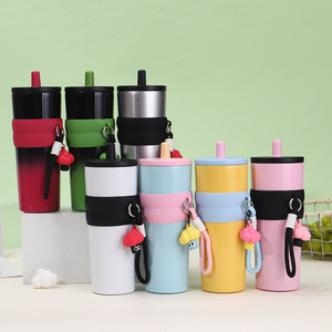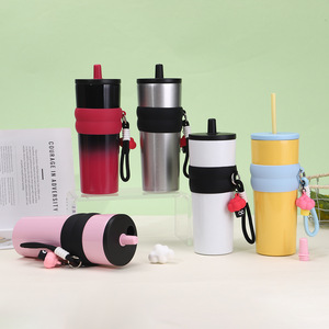跨境热销304不锈钢保温杯学生大容量车载吸管杯户外便携手提水杯