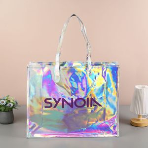 镭射袋定制手提袋透明塑料时尚logo果冻包礼物礼品pvc镭射手提袋