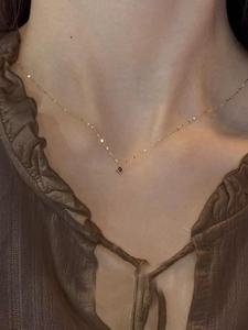 S925纯银韩系紫钻吊坠锁骨链百搭简约项链女小众2025新款配饰