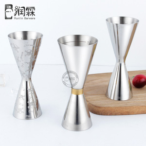 304 ステンレス鋼スケールオンスカップ日本製ゴールドリングワイン計量バーダブルヘッドバーテンダー計量カップ一体型計量カップ