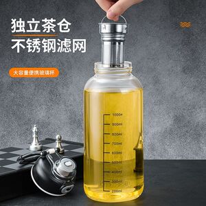 耐高温带刻度大肚杯茶水分离大容量玻璃杯商务男女学生用泡茶杯子