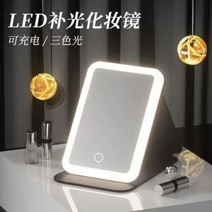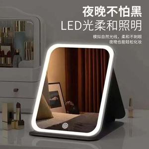 LED化妆镜带灯可折叠便携式随身ins风学生宿舍台式桌面镜高清网红