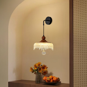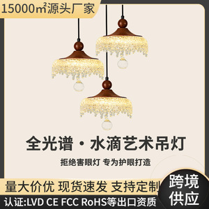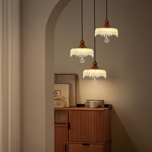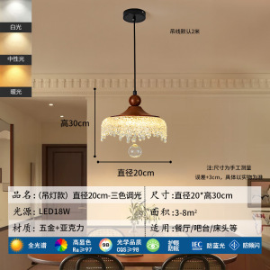 中古风卧室床头吊灯可升降复古胡桃木色法式饭厅餐桌过道玄关吊灯