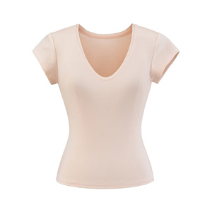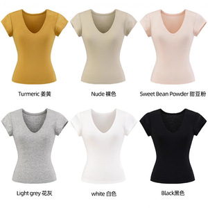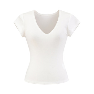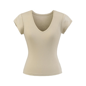 美式时尚纯色莱赛尔V领正肩短袖T恤女夏收腰百搭基础款上衣六色批