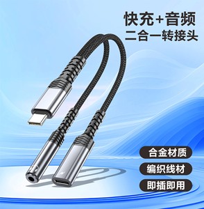 适用苹果16三星华为谷歌转接线二合一60w听歌充电数字耳机转接头