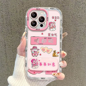 新款卡通羽纱啥都顺财神使用苹果16手机壳iPhone14PM带镜子支架15