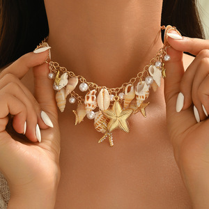 重ね付けシェルネックレス卸売 欧米越境 海辺ネックレス 多層リゾートヒトデネックレス 個性鎖骨チェーン 女性用