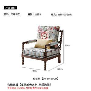 法式复古珍珠椅设计师高级单人沙发椅美式客厅实木布艺休闲老虎椅
