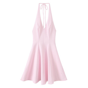 外贸批发2025夏季新款女装 欧美风时尚简约波浪式宽摆连衣裙 4661