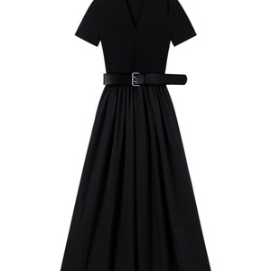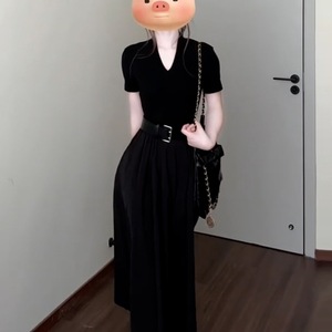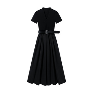 法式赫本风黑色连衣裙子女夏季2025新收腰显瘦气质感长裙其他拼接