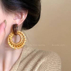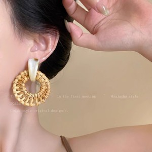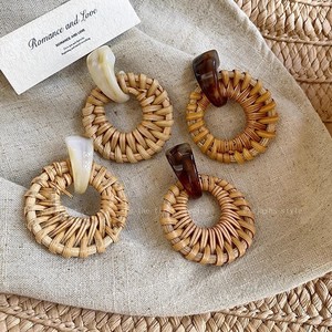 木质藤草编耳圈女2025新款波西米亚度假风耳环夸张显脸小耳钉耳饰