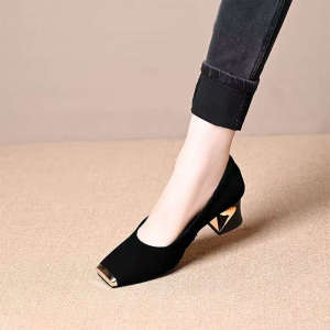 メタルアイアントゥライトブレス通勤太ヒール四季靴女性用2025新作ファッションシンプルフレンチハイヒール