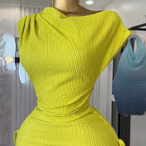 ヨーロッパとアメリカのクロスボーダー婦人服 2025 夏の新しい気質斜め襟半袖トップハイウエストストラップスカートスーツ