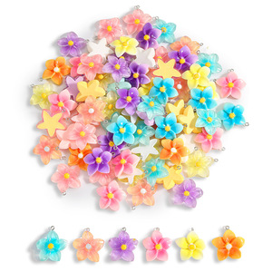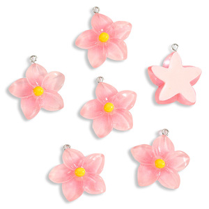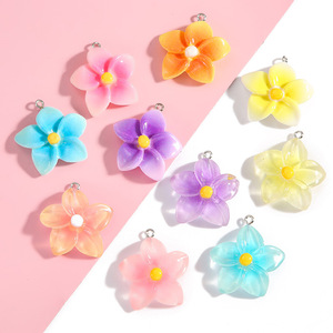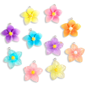 DIY热销树脂实色透明色渐变五瓣花吊坠配饰钥匙扣项链挂件