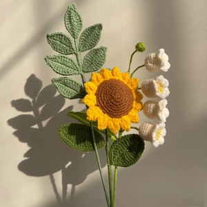 跨境郁金香勿忘我薰衣玫瑰仿真花家居装饰毛线手工钩针编织花束