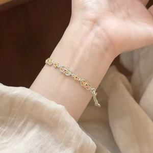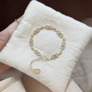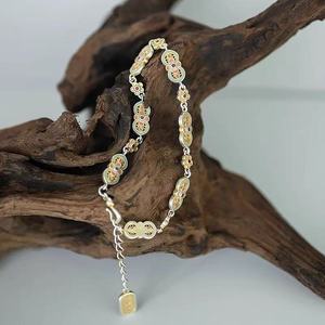 足银999.9 珐琅彩四叶花葫芦描金手链国风新中式百搭花朵新款手串