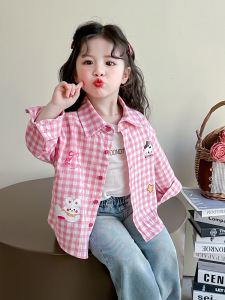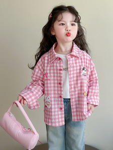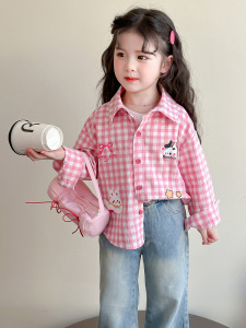 女童格子衬衫外套春秋装2025新款儿童洋气上衣小女孩长袖时髦衬衣