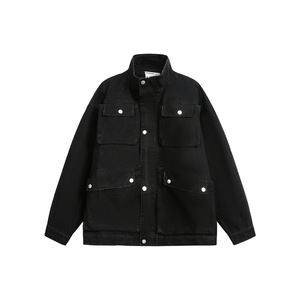 ヨーロッパとアメリカのハイストリートメンズジャケットメンズほつれ大ポケットジャケット野球ユニフォームトレンディなブランドルーズ新しいボーイズトップ