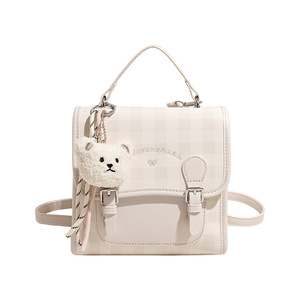 学院风新品畅销双肩包女2025百搭格纹单肩包复古小众潮时尚小背包