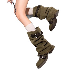 レトロ太いヒールパンツスリーブカウボーイブーツ女性のための 2025 秋の新しい荒野スタイルパイルハイブーツメイラードブーツ