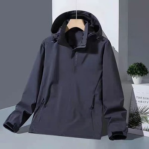 6266夹克男春秋男款秋冬纯色冲锋衣户外长袖连帽休闲运动透气
