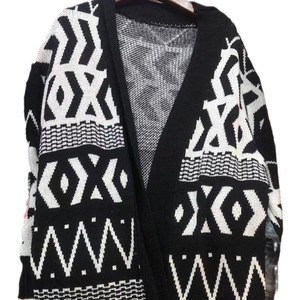 慵懒风黑色几何图形过膝毛衣开衫2025秋冬新款宽松中长款针织外套
