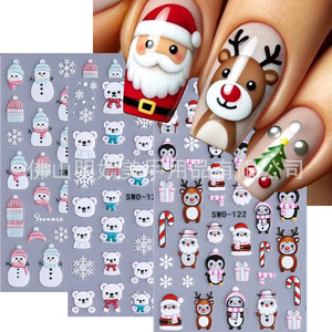跨境圣诞节浮雕美甲贴纸 ins风卡通雪人小熊冬季雪花企鹅指甲贴花