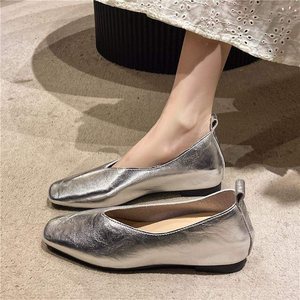 41-42码 大码女鞋时尚休闲方头奶奶鞋四季软皮百搭不累脚工作瓢鞋