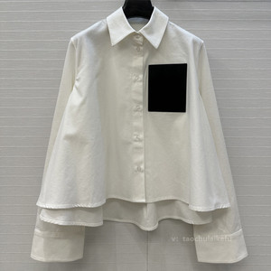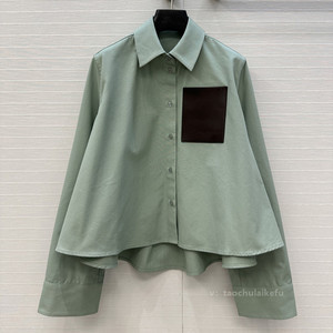 レディースレザーポケットデザインラペルシャツカジュアルカジュアルスタイルゆったり万能Aライン長袖シャツBC80108