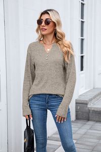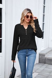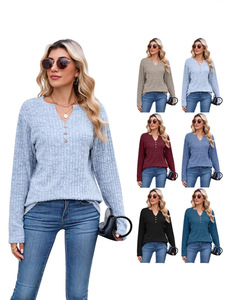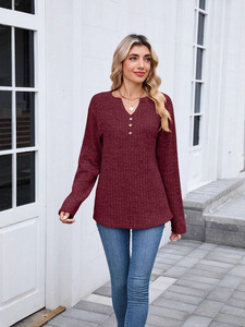 Amazon ヨーロッパとアメリカの国境を越えた貿易 2025 秋冬新作無地ピットストリップ起毛ボタンルーズ長袖 T シャツ女性用