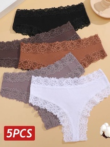 5 ピース/セット女性レースシームレス綿パンティーセクシーなブラジリアン P