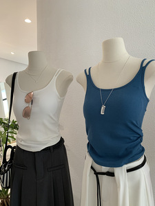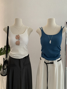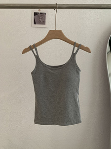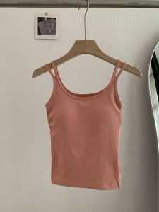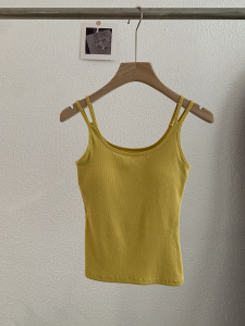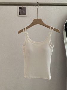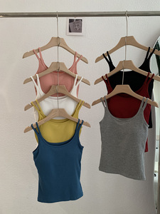 欧玛莱 双肩带吊带韩版背心女修身显瘦百搭一体带胸垫美背潮 4144