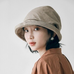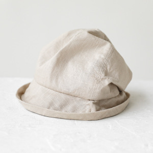 出口日单100%Y亚麻日系褶皱渔夫帽 慵懒风小帽檐夏天透气麻布盆帽