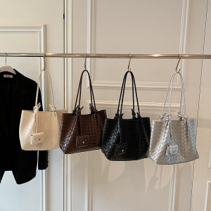 欧美时尚编织纹托特包包女2025夏季百搭流行大容量通勤单肩腋下包