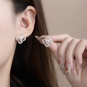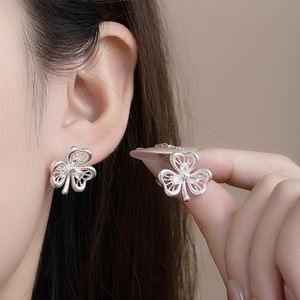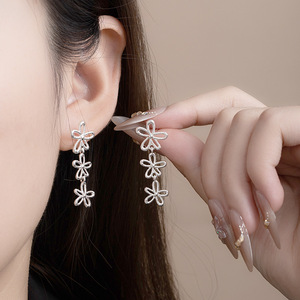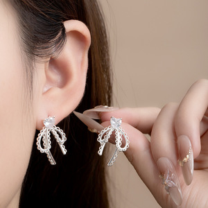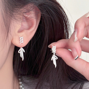 韩版芭蕾氛围感银色蕾丝花边珍珠耳环轻奢高级感时尚百搭设计耳钉
