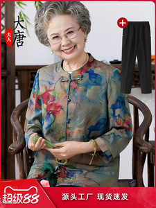 大唐夫人奶奶夏套装中老年衬衫2025年新款老年人夏季女装衬衣上衣