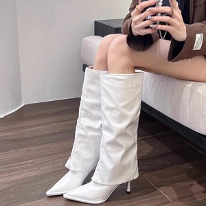 漆皮裤管靴尖头高筒细跟高跟长筒靴不过膝长靴子女秋冬辣妹骑士靴