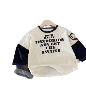邦誠子供用長袖Tシャツ2025春秋新作韓国風男の子レターデザインフェイクツーピースプルオーバーH0331