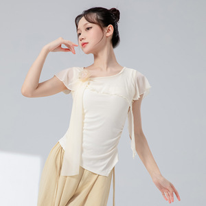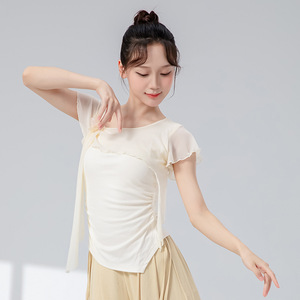 古典舞身韵新款花朵网纱拼接上衣中国舞现代舞形体舞蹈练功服纱衣