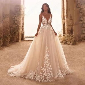 新娘深吊带带领欧美婚纱女重工主蕾丝跨境轻婚纱新款礼服法式外贸