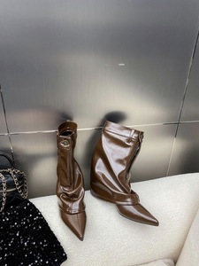 圆头细跟短靴女2025秋冬新款欧美高跟小众裤管靴短筒侧拉链瘦瘦靴