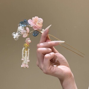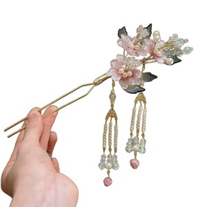 古风高级感粉色花朵流苏发簪时尚小众甜美汉服旗袍头饰簪子新款