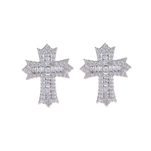 イヤリングメンズ非対称二層サイズクロスイヤリング人気の個性トレンドハンサムなジルコンイヤリング