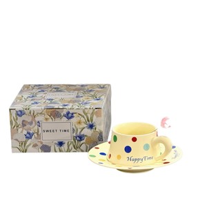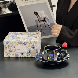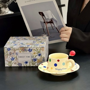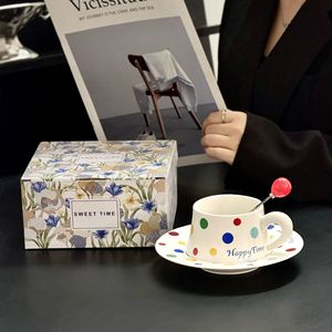 見栄えの良い家庭用クリエイティブ水玉模様のセラミックカップとソーサー、スプーン付きコーヒーカップ、オフィスウォーターカップ、女の子のお土産セット