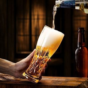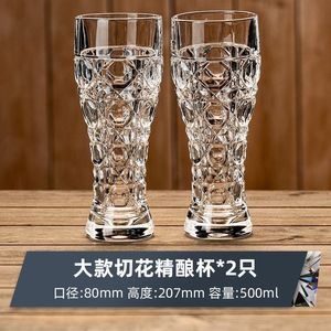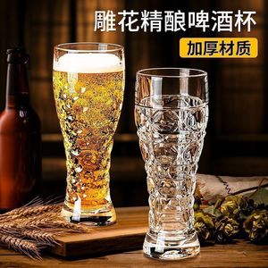 创意加厚玻璃雕花精酿收腰家用啤酒杯高颜值大容量扎啤套装饮料