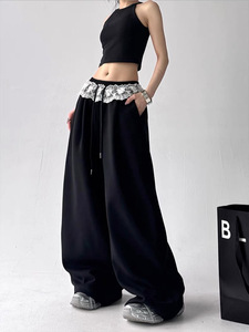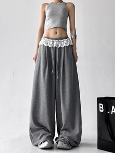 阔腿休闲裤女春秋新款2025设计感宽松蕾丝抽绳韩系运动休闲长裤女