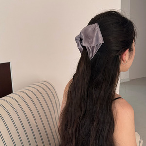 ローズエンボスプリント三角生地グリッパーリボンハーフタイテクスチャヘアシャーククリップヘアアクセサリー新しいスタイル