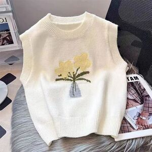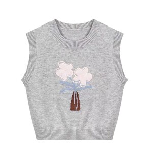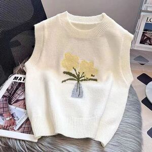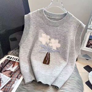 2025年秋冬新款刺绣坎肩提花针织衫花朵叠穿马甲背心圆领宽松无袖